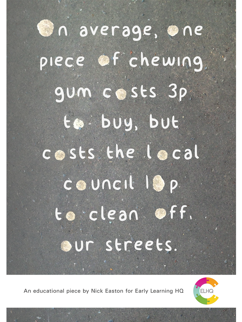 E-flyers highlighting the damaged caused by littering with chewing gum, originally as a university project but readapted in 2012 for Early Learning HQ.